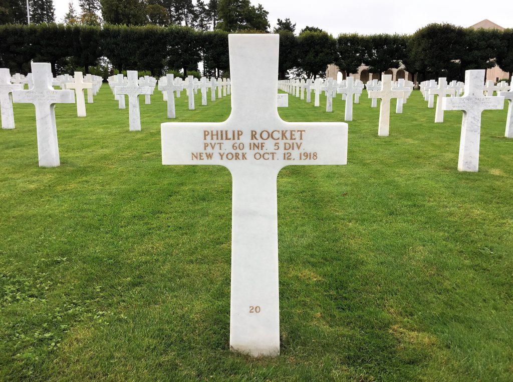 Philip Rocket headstone, Meuse-Argonne American Cemetery, Plot F Row 22 Grave 20, Romagne, France